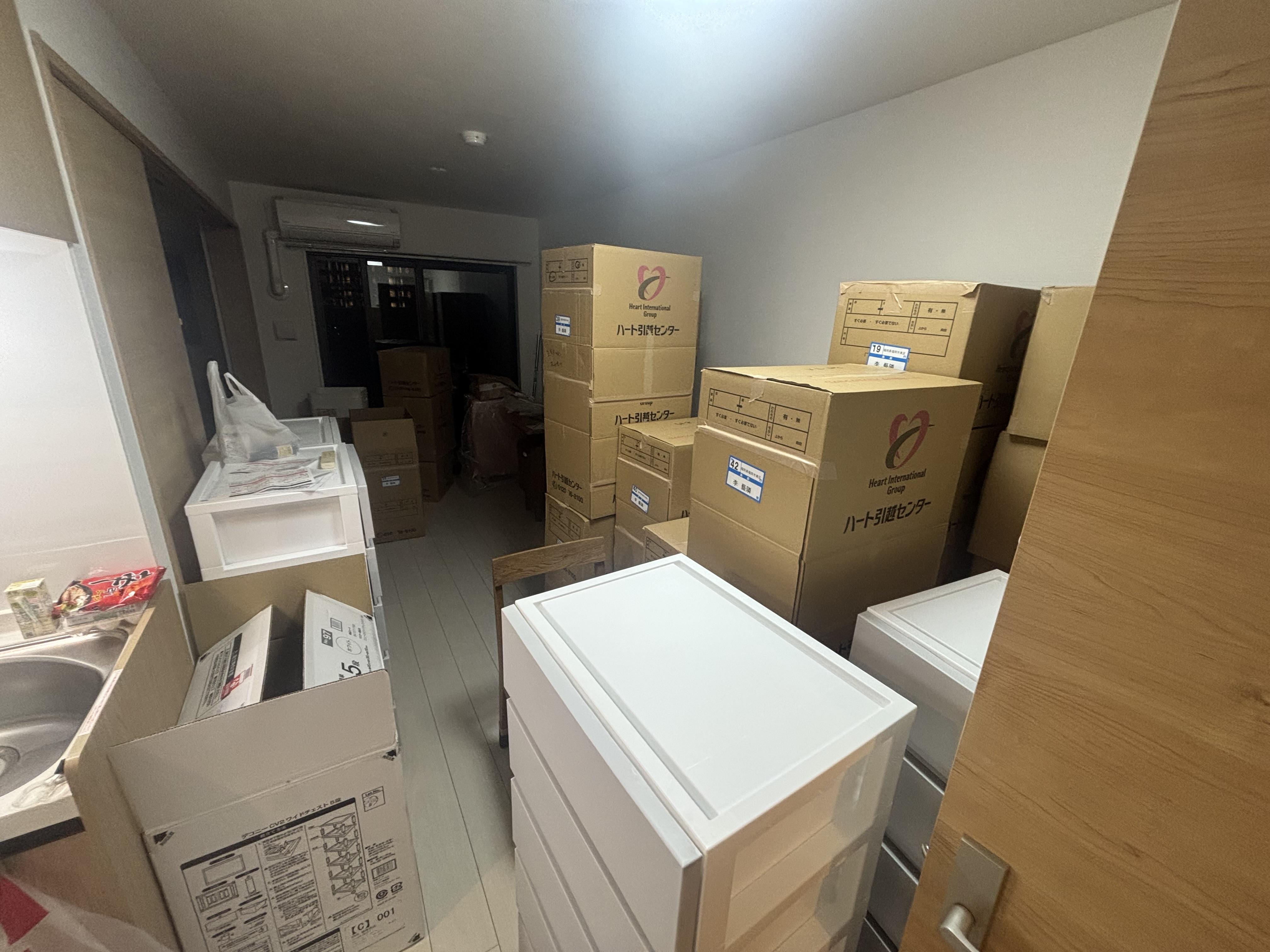 実は荷造りが間に合わなかったら、棚や3段BOXに入った荷物は棚ごと梱包され、そのまま引っ越し先に行きます。それを開梱するのはお客様です。